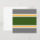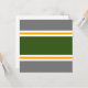 This sporty design features a wide forest green center stripe adjoined by slim white and golden yellow racing stripes against gray background.