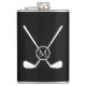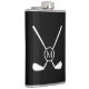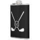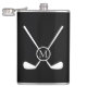 This bold golf illustration features crossed golf clubs with a central circular monogram, creating a sleek and sporty design with a modern edge on this flask. The minimalist layout and high-contrast styling make the custom initial stand out, offering a refined yet athletic look. Ideal for golf-themed accessories and personalized gifts, this design blends classic golf symbolism with contemporary monogram style.