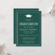 Den här enkla, moderna studentfestens inbjudan innehåller vit text som är täckt med en vit granatkork som är silhuven på en mörk grönt bakgrund. Ord "Studenten" visas i ett klassiskt sportiskt typsnitt som är perfekt för en student-idrottsman. Anpassa inbjudan med uppgifter om namn i student och party. Kortets baksida är en solid grönt.