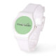Anpassningsbar, sportig, vit kiselklocka med grönt ansikte och motiverande citat påminner om att man håller sig till sina övertygelser och tro. Underbar inspirerande gåva. Om du vill ha fler motiverande eller inspirerande presentationer och objekt kan du checka ut den "uppbyggda" samlingen från vår butik BsApparelPlus på Zazzle. Tack för att du shoppade med oss!