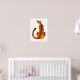 Stylized cheetah shown from behind, turning its head over the shoulder toward the viewer. The body forms a gentle S-curve with a slender neck, small head, and simplified silhouette. Bright orange coat with bold black spots and a white neck creates strong contrast and visual balance. The long tail curves to the side, complementing the pose. Set on a cool off-white background, the composition emphasizes the stylized shape, bold color, and spotted pattern on this wall print. AI-assisted artwork.