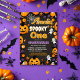 Spooky one Halloween födelsedagsfest groovy retro boho stil-mallinbjudan omedelbar nedladdning, söt Jack-o'-lyktor, baby spöken, candy, orange mörk grått färg