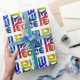 Detta är språket av fred som är på engelskt, arabiska, och hebrén på denna attraktivt och färgrikt slå in i presentpapper, det perfekta slående in papperet till spridning ord av fred denna julhelg.