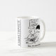 Språkentusiast frågar vid en hjälpcentral kaffemugg