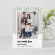 semesterhälsningar från en avstånd med dessa roliga 2020-julkort. Den moderna designen har ditt favoritfoto eller ett porträtt-orienterat foto på en grönt med liten geometrisk träd, med "uppslag glädje, inte gromer" under i svart reflexskrift. Lägg till din familj namn eller anpassningsbar hälsning under.