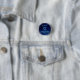 På den här bländningsknappen skuggas blåkonfektyrerna på en royal blå mörk där du i mitten kan anpassa den med brev, namn eller logotyp eller behålla som med frasen "uppslag glädje som konetti" skapande upplyftande joyous vibes. Chicens drömma blåkonfetti-tema.
