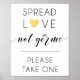 Sprid kärlek, inte gromskylt för bröllop, party, möhippor, babyduschar och för restaurang, kontor, kaffe, salon...