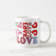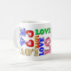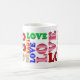 ord i Kärlek i färgstarka teckensnitt och med färgstark design står mugg i fantastisk att välja mellan i många stilar och färg.
