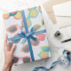 Roligt illustrerade mönster med en tumlare solglasögon i skalade koraller, teal, gult, rosa, blått och grått. Underbar för en bassäng party, en barbek, en sommarfödelsedag eller bara en roligt samlas ihop.