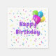 Grattis på födelsedagen text på vit bakgrund med färgstarka kandissprinkler och ballonger. Bakgrunden till färg kan ändras.