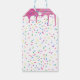 Färgfyllda godis sprinkler på vitt med droppande rosa-isbildning för födelsedag. Bakgrunden till färg kan ändras. Text är redigerbar
