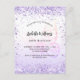 För en elegant 40:e (eller någon ålder) födelsedagsfest. En vit och violett övertoningsbakgrund för chic. Dekorerad med violett faux glitter, gnistor och en stor fjäril. Anpassa och lägg till information om namn och party. Namn är skrivet med ett handskript i stil