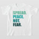 Sprid Peace Not Fear är en bra vibe som vi måste sprida. Vad skulle världen vara utan fred? Genom att ha denna enkla typografi är du definitivt en stark inspirationskälla för andra att alltid sprida fred, inte rädsla eller krig. Låt oss sprida fred genom det fredliga temat med våra t-shirts, hoodies, mugg etc.
