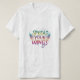 Den här inspirerande t-shirt-designen uppmuntrar dig att anamma din potential med meddelandet "Sprid Your Vingar" skrivet på bred front. Själva texten flyter, med ord i kurvor uppåt eller med ett flytande typsnitt som får bilden av vingar att breda ut sig. En sjudande palett med multifärgad ger lite energi och optimism och skapar den här designen en kraftfull påminnelse om att ta chanser och växa.