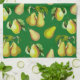 Teahanddum i en utspridd päron och löv, anpassad från botaniska vintagar, på djupa gröntens bakgrund