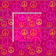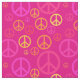 Randomiserade fredssymboler i mönster i skuggor rosa, orange och gult kan användas med valfri bakgrund färg. Trendigets grafik.