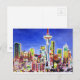 Det här är en målning av nymning av Seattle Skyline med Space Nål på natten.