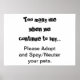 För många dör...adoptera spay/Neuter poster: Överbefolkning av sällskapsdjur är ett allvarligt problem i hela världen. Bryter det ditt hjärta att se hundar, katter och andra djur som föds upp och säljs i djuraffärer när det finns så många husdjur som behöver hem? Bråkade du se oönskade valpar och kattungar som fötts på grund av människor som inte ville bry sig om att få mamma och pappa hundar, katter och alla andra djur som sänts och kastrerats? Den här designen är till dig! Texten är "För många dör när vi fortsätter att köpa.." Anta och spola/Neuter dina sällskapsdjur."