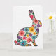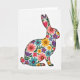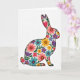This design shows a long-eared rabbit silhouette 🐇 facing right on a bright white background, with a soft edge shadow that gives it a gently lifted look. Inside the rabbit shape, an off-white backdrop is sprinkled with tiny light-blue dots, like quiet confetti behind the flowers. The interior is filled with a garden pattern of blossoms in pink, yellow, blue, and purple, woven together with leafy green stems. The close-together flowers and curling vines create the feel of a friendly, affectionate embrace, as if the spring garden is leaning in for a hug 🌷. Text sits along the lower portion of the front, centered in a light pastel tone that stays easy to read without overpowering the artwork. The lettering is simple and smooth, leaving plenty of open space so the rabbit and floral details stay in focus. A thin, soft gray shadow traces the rabbit’s outline against the white backdrop.