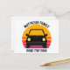 Cool custom road trip postcards for spring break or summer vacation with your family or friends. Personalize with your last name or group above the retro sunset and car silhouette. Perfect keepsake for a trip to a cottage or across the country. Drive off into the sunset.