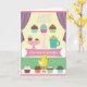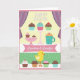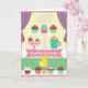 Designed with a spring celebration in mind, this Easter-themed card features a tall scene framed by soft pink borders and flowing purple drapes, like a decorated window. Near the top, a short greeting appears in white letters on a calm yellow background, centered and easy to read. In the middle, a white two-tier stand displays rows of small treats in pastel wrappers of teal, pink, and green, topped with chocolate swirls, sprinkles, tiny flowers, and a single red berry. A pink checkered pedestal holds one sweet beside a simple brown cross, adding a gentle, reflective note to the sugary display. Off to one side, a teal container with white dots is filled with a golden topping, as if ready to be shared between close friends. Across the center, a soft pink banner carries an inscription in white cursive lettering, giving the scene a tender, affectionate touch 🐰. At the bottom, a green ground with small white dots supports a bright yellow chick standing among more pastel treats, with a few little 🌷 accents tucked into the arrangement.