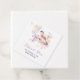 Pretty baby shower favor tag with an adorable bird and purple and yellow flowers. Perfect for a spring or summer baby shower. The words can be changed to suit your own details or requirements