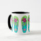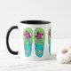Cute rows of brightly colored and flower inspired flip flops on a coffee mug.