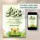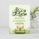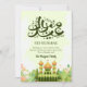 A fresh and vibrant card showing a green mosque nestled in a blooming garden. This design is perfect for a "Springtime Eid" vibe, focusing on growth, renewal, and celebration.