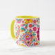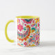 Vibrant Spring Floral Paisley inspired pattern Coffee mug featuring, pink, yellow and green flowers incorporated into a paisley style pattern.