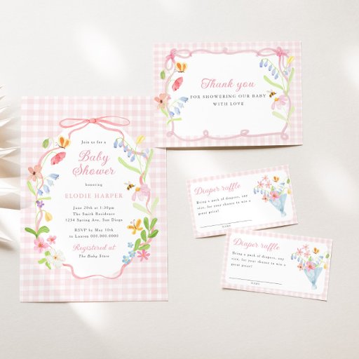 Spring Floral Pink Gingham Baby ShowerDesignad av MOONDAISY STUDIO