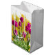 This gift bag showcases a charming spring floral design, featuring vibrant yellow daffodils and elegant purple tulips. Ideal for spring or Easter gifting occasions, this bag complements the matching tissue paper available in my springtime collection.