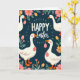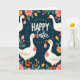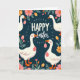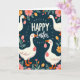 This design shows four stylized white birds arranged evenly around a central Easter greeting, their rosy cheeks and close spacing suggesting a sweet, friendly bond 🐇. They stand out against a deep teal background, with bright orange beaks and webbed feet adding a sunny touch. Two of the birds hold striped pastel egg shapes gently in their beaks, as if offering small gifts to one another, while the other two wear similar egg motifs on their bodies 🐰. A border of coral-pink and warm orange flowers, fresh green leaves, and small buds wraps the scene like a garden frame. The main text sits centered in the open space, with the larger words in white and a smaller line beneath in a lighter, softer tone for contrast. The lettering uses a simple rounded style paired with a flowing cursive accent, keeping the message easy to read while still feeling tender. Around the edges, the blossoms cluster in corners, with a few leaves pointing inward toward the birds and the centered greeting.