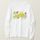 Stay cozy and stylish during the transition between seasons with this whimsical spring floral long-sleeve shirt. The design features a vibrant lime green script surrounded by playful pink blossoms and yellow butterflies, making it a perfect choice for layered outfits on cool mornings. This feminine nature-inspired top brings a cheerful garden aesthetic to your casual wardrobe, offering a fresh look for easter gatherings or weekend strolls. Highlighting a bright and airy theme, this floral graphic tee celebrates the beauty of the outdoors.