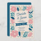 The design uses a vibrant yet soft pastel palette, leaning into a spring or summer garden theme. It is framed by a playful border of stylized, multi-colored petals and leaves in shades of teal, coral, and soft pink.