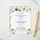This beautiful and elegant wedding details card can be customized with important information for your guests such as wedding reception, hotel accommodation, transportation, directions, dress attire, itinerary, registry and more. The design features watercolor purple flowers and foliage. The text combines handwritten script and serif fonts for a stylish and modern look. This is perfect for a spring rustic wedding.