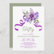 Honor a special woman with this elegant and feminine Birthday party invitation. This elegant design features watercolor violet flower bouquet with pastel green leaves and purple ribbons. Each text is customizable for your needs.