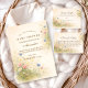 A soft watercolor meadow blooms across the bottom of this elegant design, featuring delicate daisies, blush cosmos, buttery yellow florals, and airy blue wildflowers. The warm ivory background and refined gold typography create a graceful balance between rustic charm and timeless sophistication. Inspired by sunlit fields and gentle summer breezes, this design feels romantic, fresh, and effortlessly classic. Perfect for a garden-inspired celebration with a refined, storybook touch.