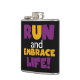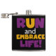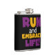Om du kärlek till springa, springa 5 KS, 10 KS, halvmaratoner eller maratoner kommer du att kärlek den här färgstarka textdesignen i lila och gult som läser Springa och Embrace Life! T-tröjor, hoar, magneter, knappar, kort, klistermärken, nyckelringar och många andra artiklar för springer som kärlek har en klar och färglös kördesign!