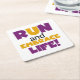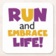Om du kärlek till springa, springa 5 KS, 10 KS, halvmaratoner eller maratoner kommer du att kärlek den här färgstarka textdesignen i lila och gult som läser Springa och Embrace Life! T-tröjor, hoar, magneter, knappar, kort, klistermärken, nyckelringar och många andra artiklar för springer som kärlek har en klar och färglös kördesign!
