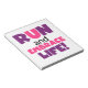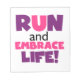 Om du kärlek till springa, springa 5 KS, 10 KS, halvmaratoner eller maratoner, så kan du kärlek den färgstarka textdesignen i lila och rosa som läser Springa och Embrace Life! Springa och Embrace: T-shirts, mugg, påsar, kort, klistermärken, nyckelringar, munspadar, iphone case, magneter och mycket mer!