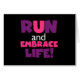 Om du kärlek till springa, springa 5 KS, 10 KS, halvmaratoner eller maratoner, så kan du kärlek den färgstarka textdesignen i lila och rosa som läser Springa och Embrace Life!