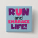 Om du kärlek till springa, springa 5 KS, 10 KS, halvmaratoner eller maratoner, så kan du kärlek den färgstarka textdesignen i lila och rosa som läser Springa och Embrace Life! Springa och Embrace: T-shirts, mugg, påsar, kort, klistermärken, nyckelringar, munspadar, iphone case, magneter och mycket mer!