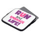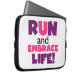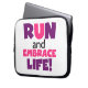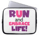 Om du kärlek till springa, springa 5 KS, 10 KS, halvmaratoner eller maratoner, så kan du kärlek den färgstarka textdesignen i lila och rosa som läser Springa och Embrace Life! Springa och Embrace: T-shirts, mugg, påsar, kort, klistermärken, nyckelringar, munspadar, iphone case, magneter och mycket mer!
