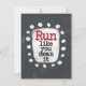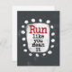 En söt typografisk design som säger "Springa like you Elak It". Den har svart och röd text på en vit rektangel med funky, lekfulla vita prickar runt den, allt på en grått-bakgrund.