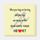 Att köra är en utmanande sport. Den behöver lämplighet, beslutsamhet och framför allt HEART. Behålla som alltid tänkte framför dig. Den här inspirationstexten är i svart skrift på en gräddbakgrund med en springers bleka silhuett.