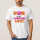 Om du kärlek till springa, springa 5 KS, 10 KS, halvmaratoner eller maratoner kommer du att kärlek den här färgstarka textdesignen i orange och shock rosa som läser Springa och Embrace Life! T-tröjor, hoar, magneter, knappar, kort, klistermärken, nyckelringar och många andra artiklar för springer som kärlek har en klar och färglös kördesign!