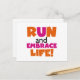 Om du kärlek till springa, springa 5 KS, 10 KS, halvmaratoner eller maratoner kommer du att kärlek den här färgstarka textdesignen i orange och shock rosa som läser Springa och Embrace Life! T-tröjor, hoar, magneter, knappar, kort, klistermärken, nyckelringar och många andra artiklar för springer som kärlek har en klar och färglös kördesign!