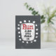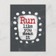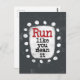 En söt typografisk design som säger "Springa som om det gällde". Den har svart och röd text på en vit rektangel med roliga, lekfulla vita prickar runt omkring, allt på en grå bakgrund.