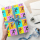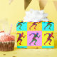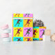 Silhuetter med flera färgader av springer i bakgrunden av kvadrater med flera färgader