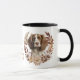 En söt höstandekrans i burnbrunt, brunt och kräm omger bilden av en vacker engelsk Springer-spanjor. Hund skrivs ut två gånger på mugg, med anpassningsbarna mellan dem.